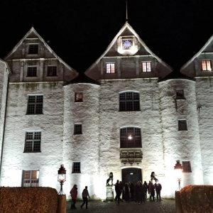 Einen Ausflug der besonderen Art unternahmen wir mit dem DRK Böel- Mohrkirch in diesen Herbsttagen. „Nachts im Schloss“ war das Motto, unter dem unsere Gruppe mit 24 Teilnehmern zur Besichtigung IM Glücksburger Schloss angemeldet war. Beim Klopfen ans Hauptportal zur abendlichen Stunde, wurde uns gleich von drei „Schlossangestellten“ das Tor geöffnet und wir wurden auf besondere Weise hereingebeten. Schummeriges Licht flackerte nicht nur im Eingangsbereich. Da sich dies auch in den anderen Räumen nicht änderte, wurden wir alle mit Taschenlampen ausgestattet.