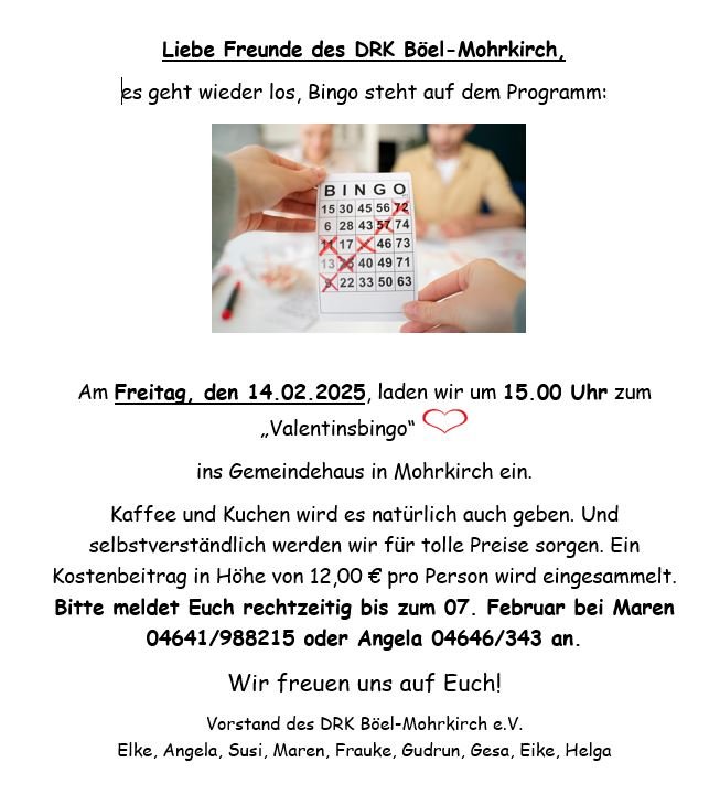 Moin an alle Freunde und Mitglieder des DRK Böel-Mohrkirch,