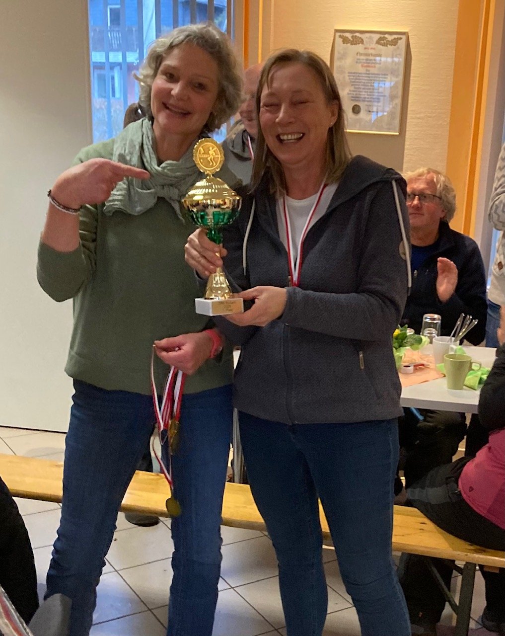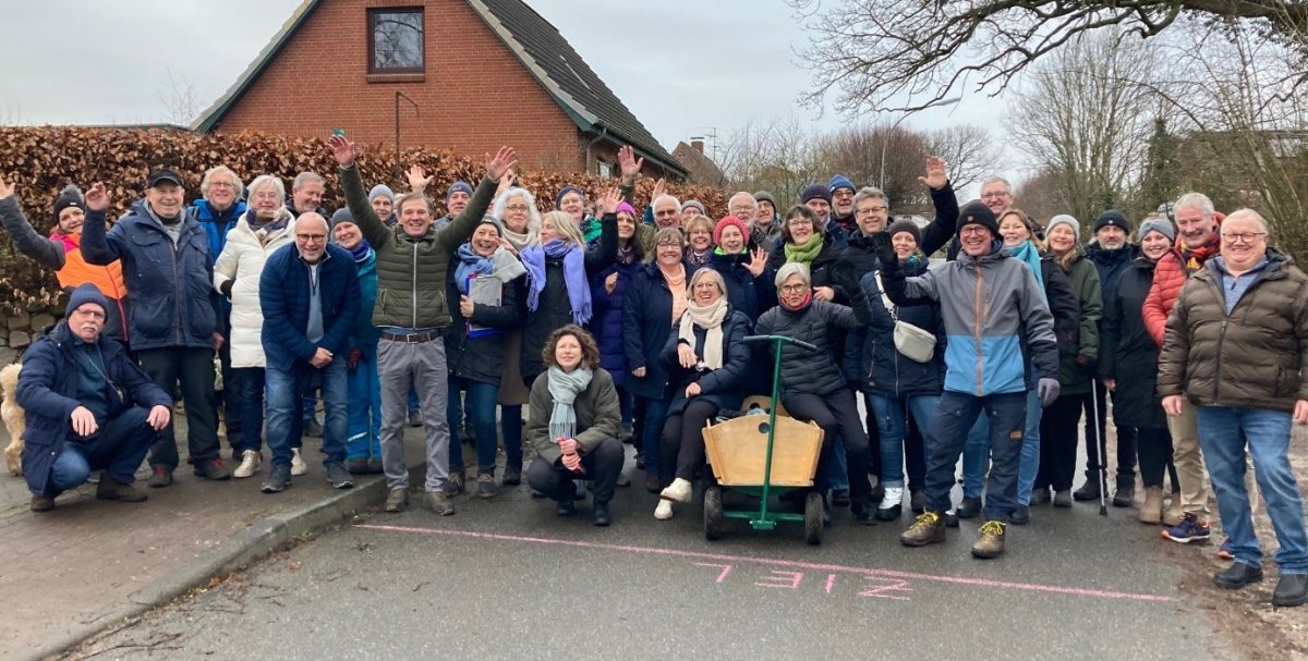 Am Gemeindehaus angekommen, sorgte die gute Laune für einen interessanten Schnack mit allen Boßelfreunden. Es dauerte nicht lange, da konnten Susi und Eike die Siegerehrung vornehmen. Gewonnen hatte die Gruppe der „Appelberger Nachbarn mit etwas Krämersteeen“. Stolz nahmen die Gewinner den Wanderpokal entgegen. Dann endlich gab es heiße Suppe, Punsch und kalte Getränke, damit das leibliche Wohl auch nicht zu kurz kam.