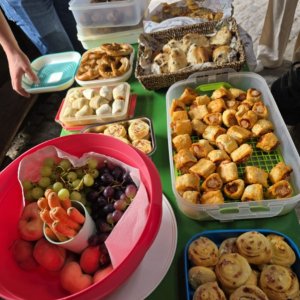 Zur Mittagszeit wurde eine wohlverdiente Pause eingelegt. Es wartete ein leckeres Buffet mit frischen Salaten, Snacks und gegrillten Würstchen (gesponsert von der Firma Lassen-Ahneby). Die Stärkung tat gut und sorgte für neue Energie für den Nachmittag.