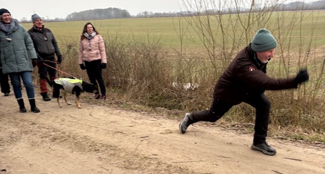 Nach und nach ging es los, alle kamen gut voran - immer die Kugel, den Spaß und die kleine Stärkung im Blick. Die Kugel rollte, „Liek lang“ hieß es dann und wann, auch wenn kleine Hügel das Rollen nicht einfach machten. Eine besondere Pause gab es unterwegs, wo Maren kurzerhand eine Station mit heißem Tee aufbaute und so für eine warme Zwischenverpflegung sorgte.