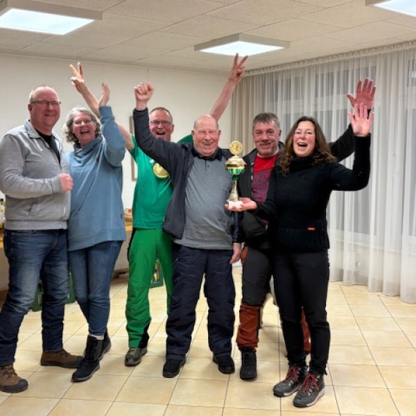 Den Wanderpokal nahm die Gruppe „Rund um die Hühmühle“ - Ralf, Kirsten, Jason, Peter, Scherzi und Angela - mit nach Hause.