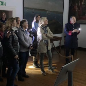 Einen Ausflug der besonderen Art unternahmen wir mit dem DRK Böel- Mohrkirch in diesen Herbsttagen. „Nachts im Schloss“ war das Motto, unter dem unsere Gruppe mit 24 Teilnehmern zur Besichtigung IM Glücksburger Schloss angemeldet war. Beim Klopfen ans Hauptportal zur abendlichen Stunde, wurde uns gleich von drei „Schlossangestellten“ das Tor geöffnet und wir wurden auf besondere Weise hereingebeten. Schummeriges Licht flackerte nicht nur im Eingangsbereich. Da sich dies auch in den anderen Räumen nicht änderte, wurden wir alle mit Taschenlampen ausgestattet.