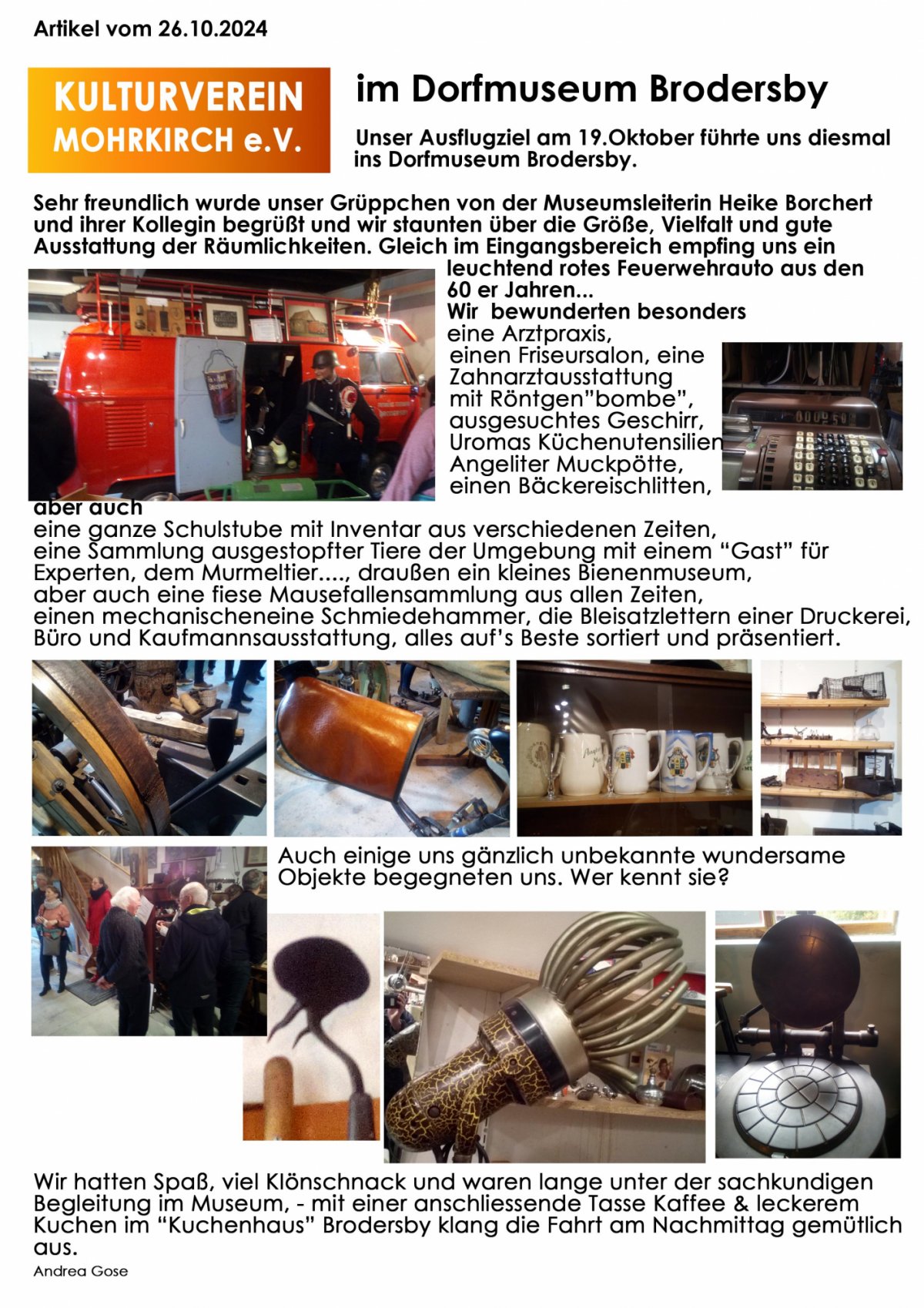 Um den Bestand der volksundlichen Sammlung des verstorbenen Herbert Priske zu sichern, wurde der Kulturverein Mohrkirch am 10.November 1986 auf Initiative von Kurt Jensen und Johannes Callsen, Langdeel, gegründet. Der Kulturverein hat sich folgende Schwerpunkt ihrer Arbeit gesetzt: