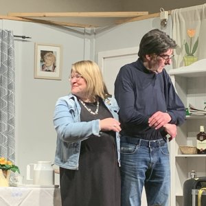 Ein anderes – und vielleicht noch wichtigeres Requisit für unsere Aufführungen – stellen die Kulissen dar. Diese sind aus großflächigen Press- bzw. Spanplatten gefertigt und bilden für die jeweiligen Aufführungen den optischen Spielort ab. Für fast jedes neue Stück mussten die Kulissen umgebaut und auf das jeweilige Stück "zugeschnitten" werden – z,B. für die Handlungsorte Campingplatz, Schiffskajüte, Kuhstall und sehr häufig für eine "gute Stube". Nach diesen vielen Umbauten wurde eine Runderneuerung erforderlich, die im Januar 2017 schließlich unter der fachlichen Leitung unseres Mitspielers (und Tischlermeisters) Theo Jessen durchgeführt wurde. Hierbei haben wir nicht nur uns selbst, sondern ebenfalls ein Großteil unseres Kassenbestandes verausgabt.